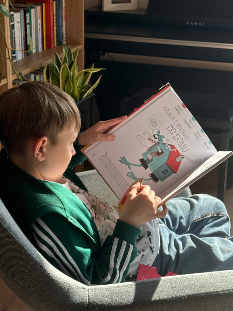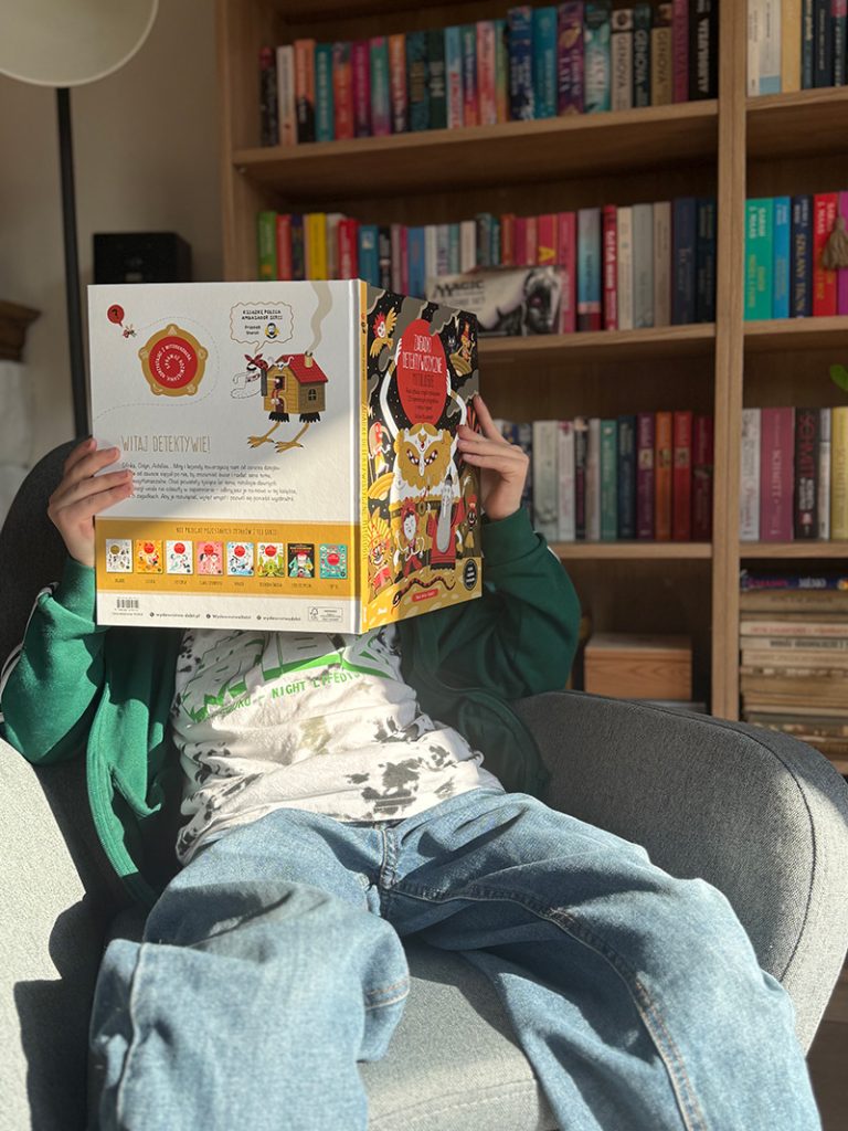 Książka napisana jest prostym, przystępnym językiem, dlatego starsze dzieci spokojnie poradzą sobie z nią samodzielnie. Zagadki były testowane na 9-latku i to z bardzo dobrym efektem. Chętnie sięgał po książkę sam, równie dobrze sprawdzała się podczas wspólnego czytania. To jedna z tych książek, które budują wspólny czas rodzica z dzieckiem i przy okazji uczą bawiąc. Zagadki urozmaicają tradycyjna formę książki, jest to alternatywa, która na pewno zaciekawi dziecko.